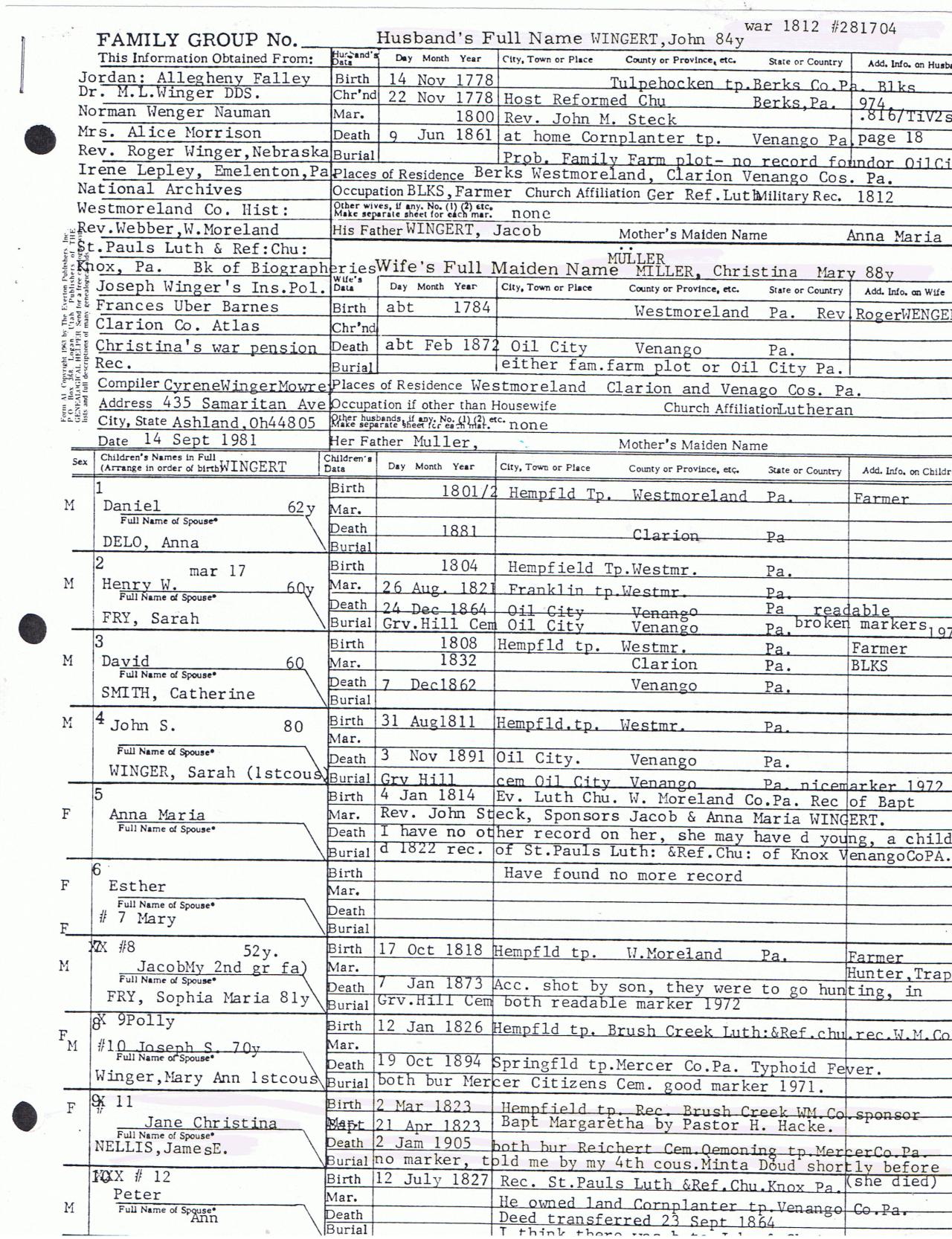 birth of childMary Ann Winger Westmoreland County, Pennsylvania, USA ⇓ 4 Sources ⇓ |