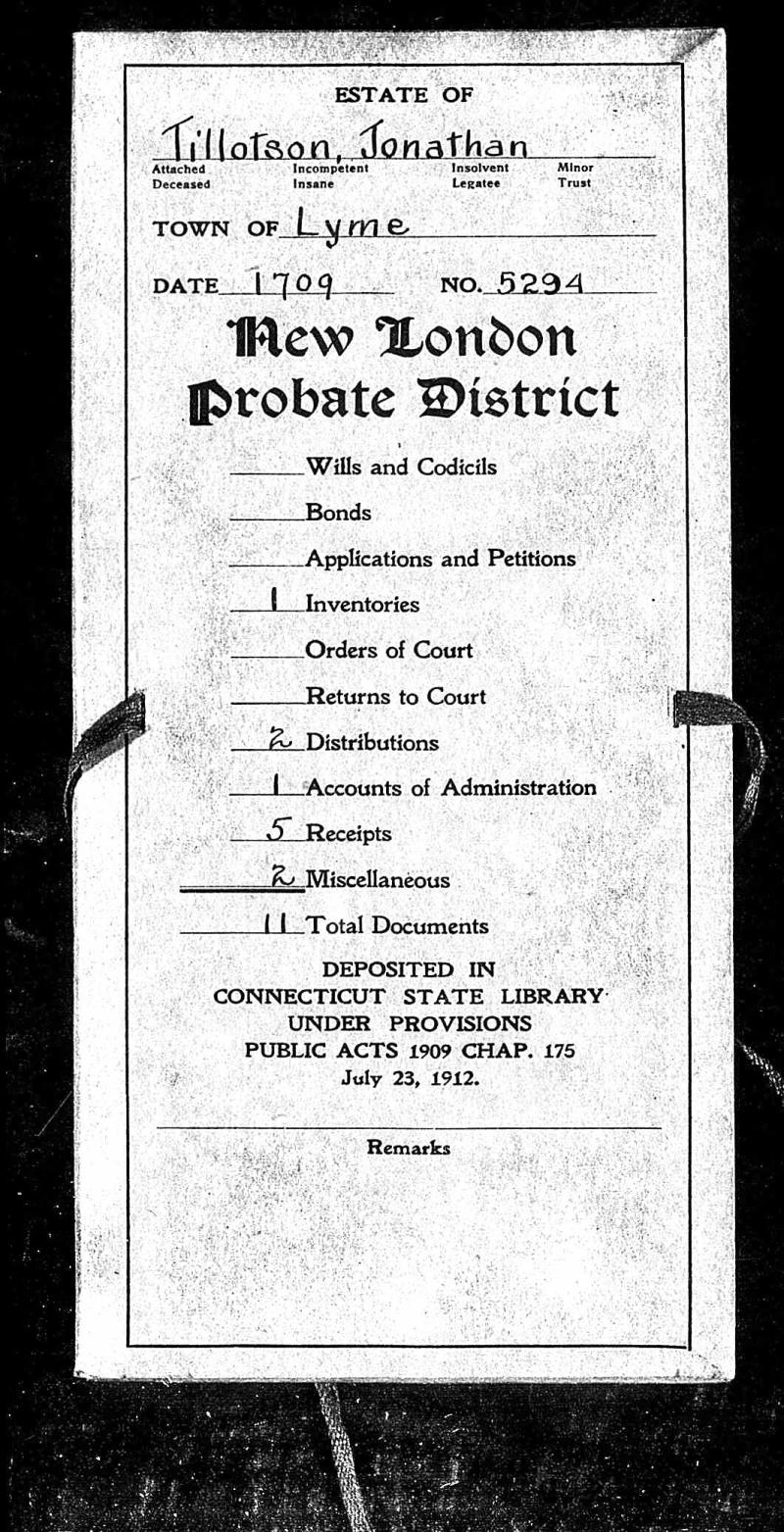 Probate Documents for Jonathan Tillotson