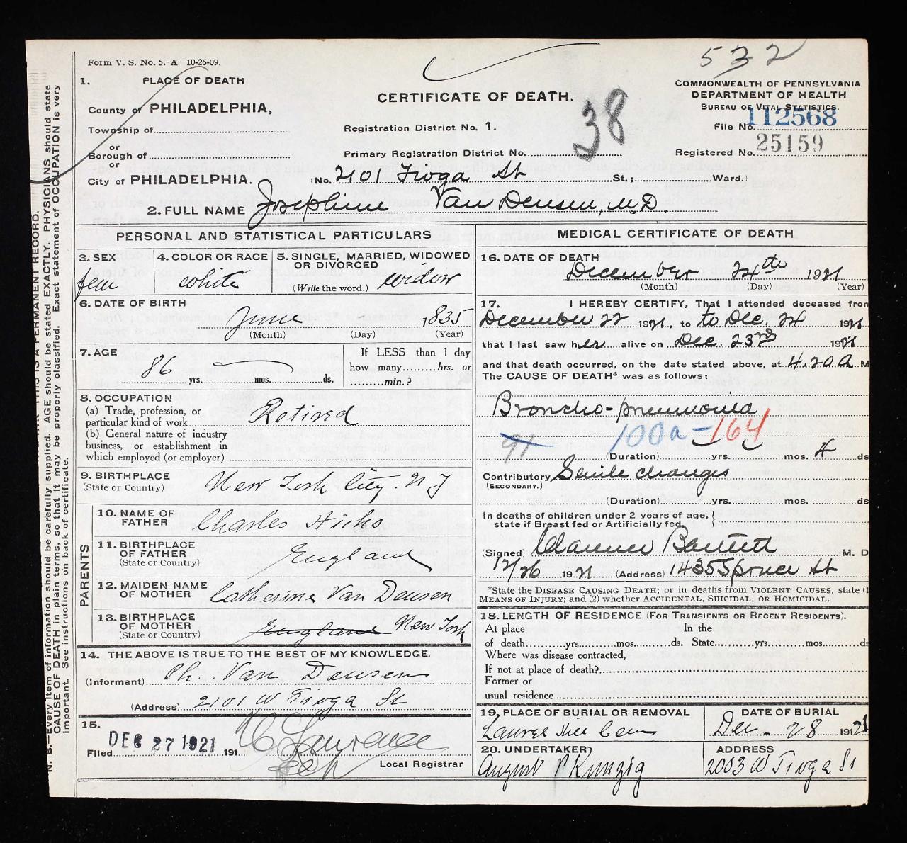 birth of childWinfield Van Deusen Philadelphia, Pennsylvania, USA ⇓ 3 Sources ⇓ |