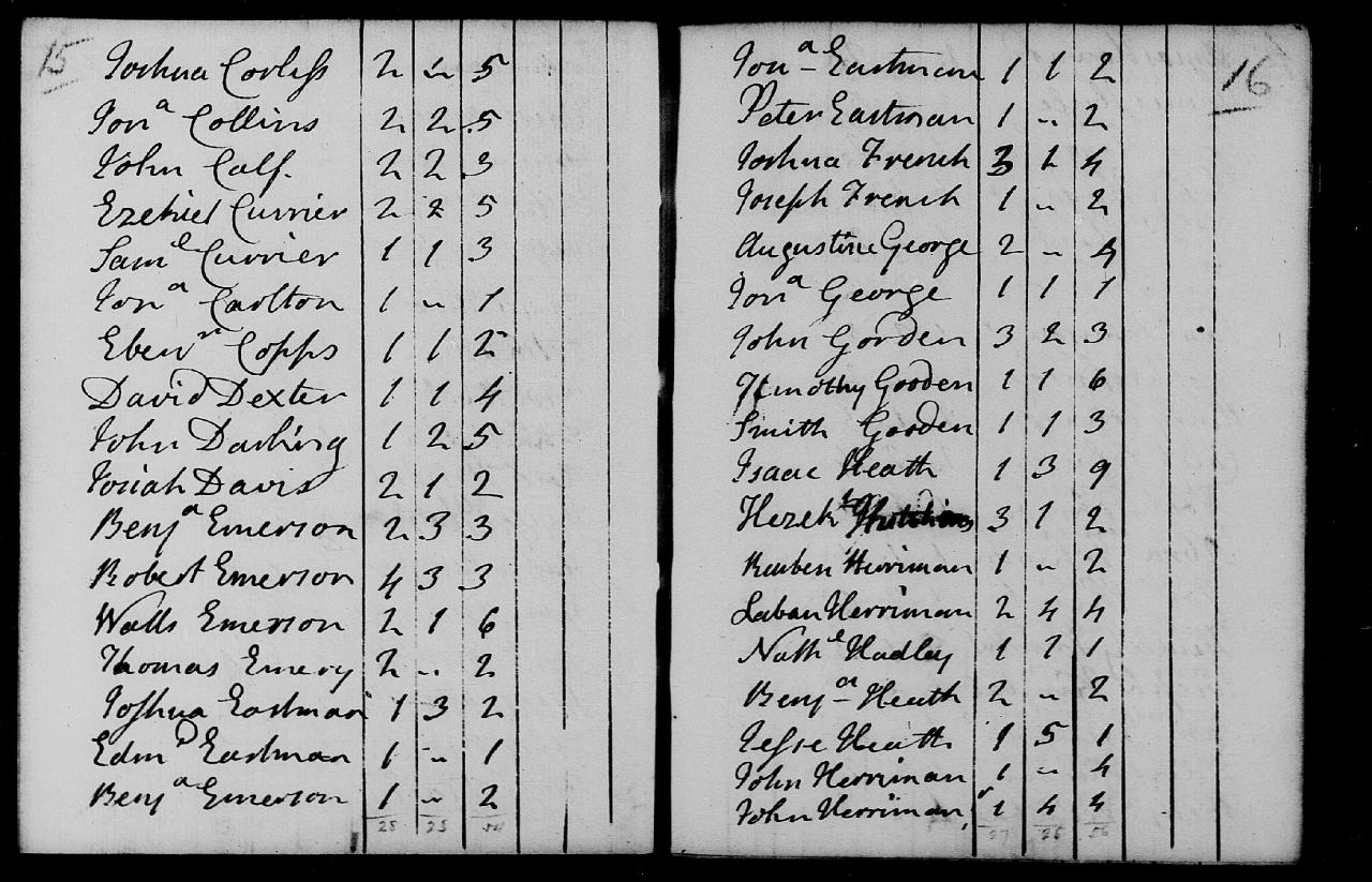 residenceHampstead, Rockingham, New Hampshire, USA ⇓ Two pages away, on page 17, Joseph Kimball is living with wife Martha Colby. She is likely the Martha that is the sister of Dorothy. There are also Eastmans living on the same page, and Heaths. 1 Source ⇓ |