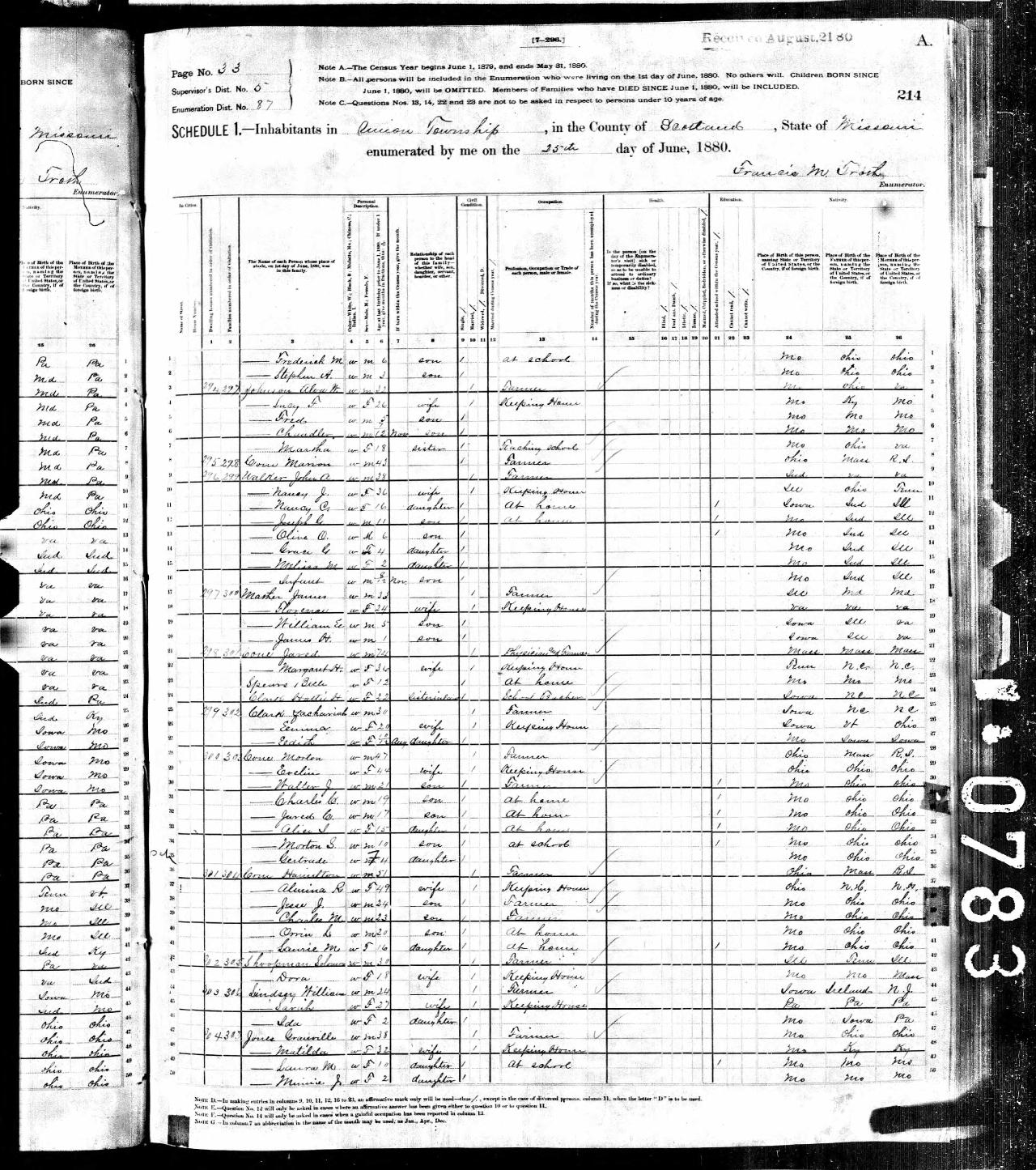 residenceMemphis, Scotland County, Missouri, USA ⇓ Living with her brother Joseph 1 Source ⇓ |
