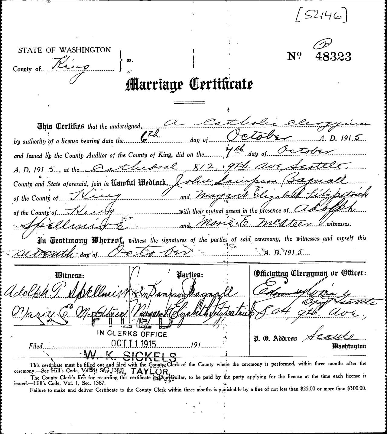 marriageJohn Sampson Bagnall Seattle, King, Washington, USA ⇓ 1 Source ⇓ |