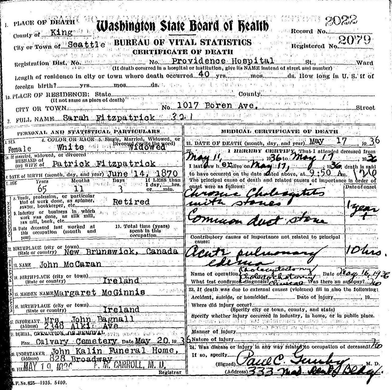 burialChatham, New Brunswick, Canada ⇓ Buried in Calvary Cemetery. |