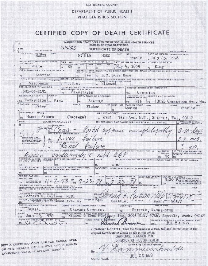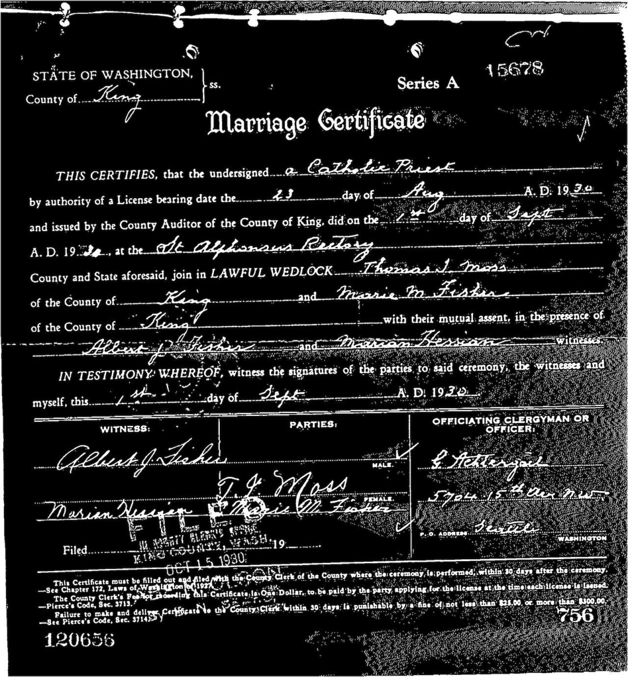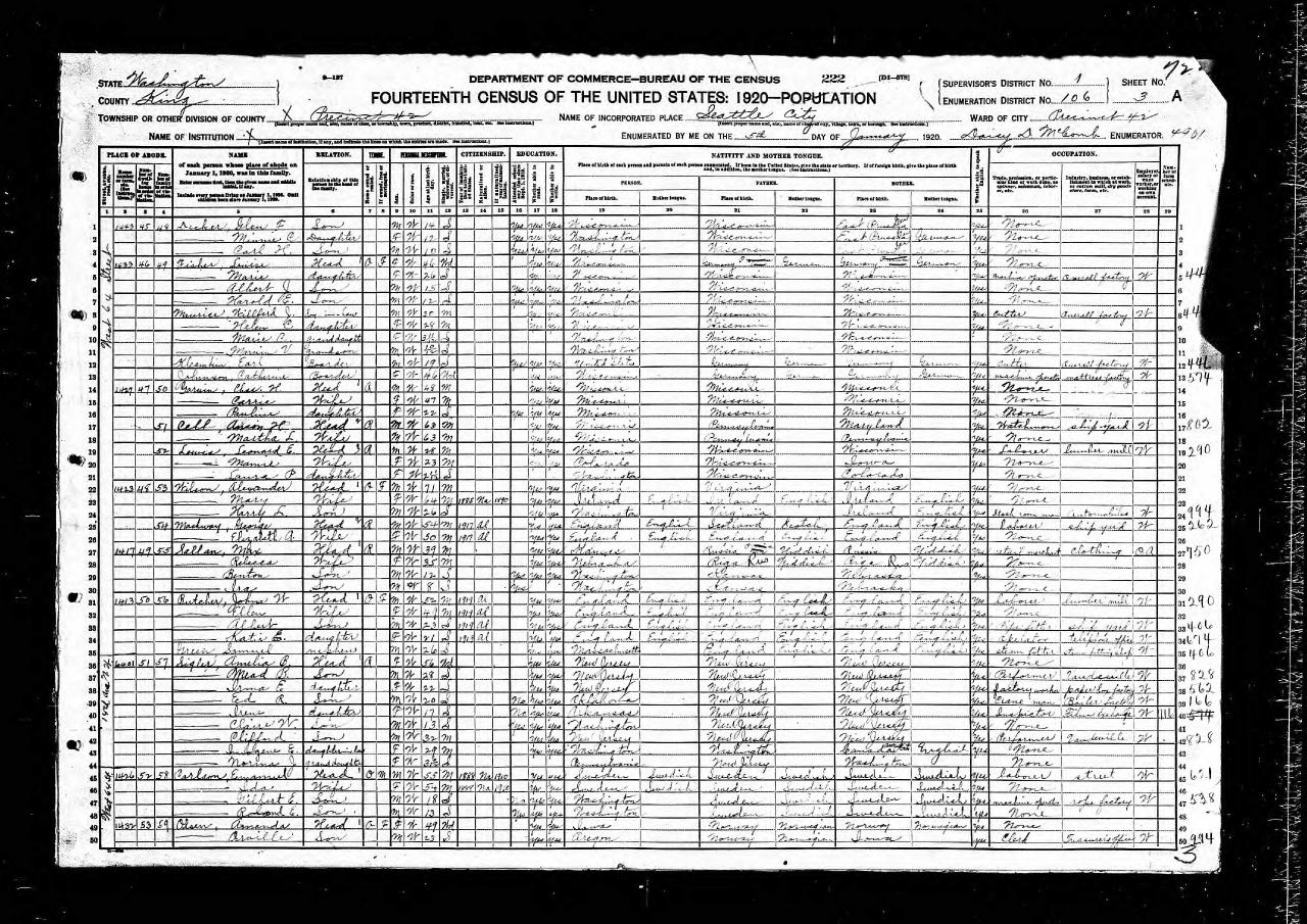 residenceSeattle, King, Washington, USA ⇓ They were living on West 64 Street. Marie, the second eldest daughter, was working as a machine operator at an overall factory, and Helen's husband Wilfred Maurice was working as a cutter there. 1 Source ⇓ |
