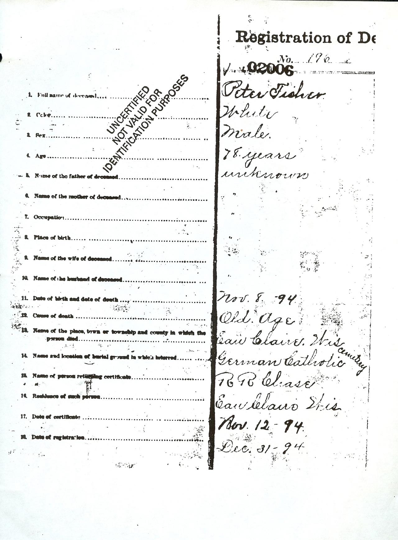birth of childPeter Joseph Fisher Jr. Stevens Point, Wisconsin, USA ⇓ 2 Sources ⇓ |
