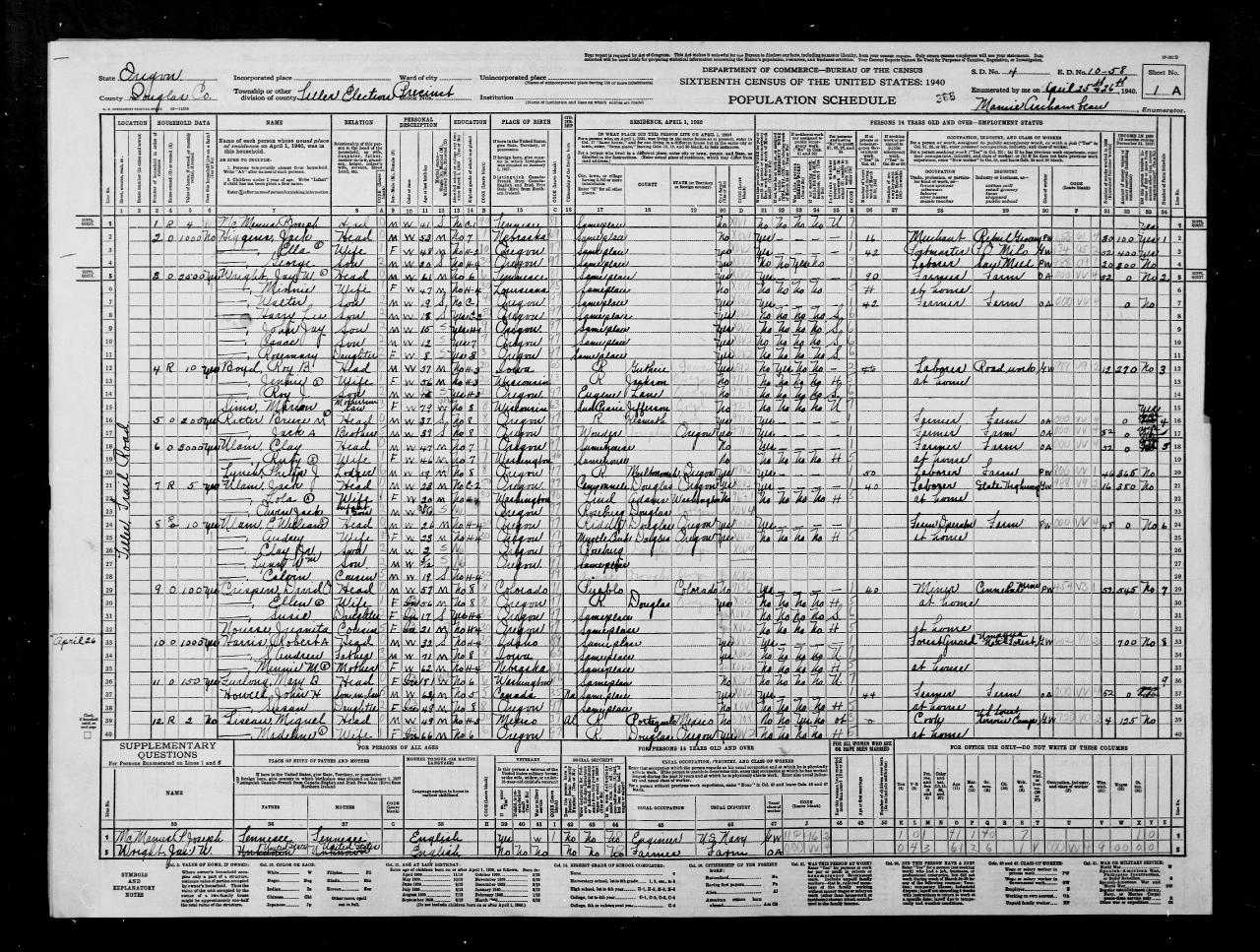 residenceTiller Election Precinct, Douglas, Oregon, USA ⇓ He was a roadwork laborer. 1 Source ⇓ |