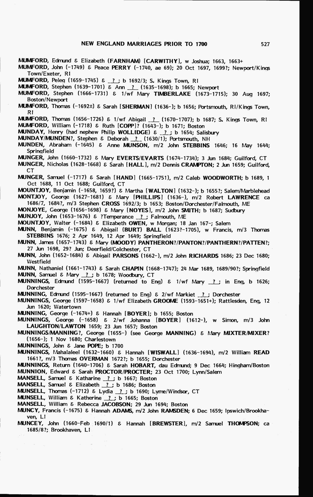 birthEngland ⇓ In a New London court case in 1695, Thomas Munsell gave his age as 55, so born in 1639 or 1640. 2 Sources ⇓ |